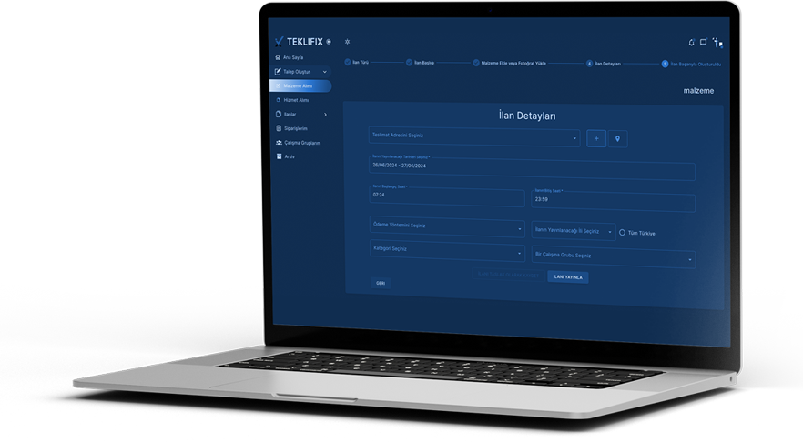 Alıcı firmalar, ihtiyaç duydukları ürün veya hizmetler için platform üzerinden teklif talepleri oluşturur.